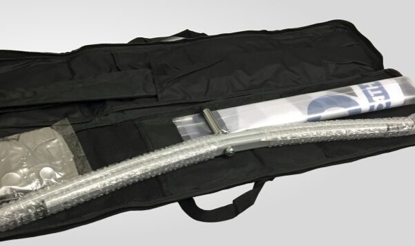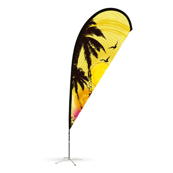 Bandiera a goccia M: kit composto da base a croce e asta verticale in alluminio cm 347, innesti a baionetta ed ultimo segmento in fibra di plastica. Il tutto zavorrabile con la ciambella in dotazione. Sacca di trasporto compresa nel prezzo.